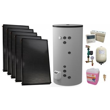 Pachet sistem solar presurizat, 5 x Panou solar plan Fornello 2.0 m² SPFP, Boiler cu 2 serpentine FORNELLO SOL 500 LT 2S, grup pompare, controller, vas expansiune, antigel, aerisitor 1/2