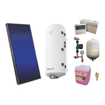 Pachet sistem solar presurizat, panou solar plan Sunsystem PК SL FP 2.0, Boiler cu 2 serpentine Eldom 150 l 2S, controller, vas expansiune, grup pompare, aerisitor 1/2, antigel